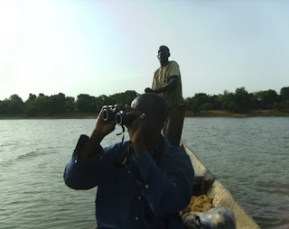 In central Mali, manatee researcher Soumaïla Berthe is starting surveys to learn about manatees in the Bani River, a 775 km long tributary of the Niger River. Berthe attended the training workshop I led in Djenné, Mali in 2010, and he was one of the most dedicated and enthusiastic members of the group. He’s been fascinated with manatees for years, and had educated himself about them online since there are few other resources in Mali. I was also able to visit his study area near San when I was in Mali (see posting from November 18, 2010). With no funding for his manatee work (his official job is a regional director for the Niger River Basin Authority), Berthe goes out in his spare time to start surveys, train others, and build a local manatee sightings network that is creating and maintaining a database of known manatee use areas and year round sightings. So far Berthe has documented a new dam on the Bani that has changed the pattern of seasonal waterflow and is likely effecting manatees ability to access important feeding habitat, plus he has recorded known seasonal use locations reported by fisherman, and collected samples of manatee bone and feces for genetics and stable isotope analyses. He has 5 volunteers working with him, and I am very impressed with his energy and determination.